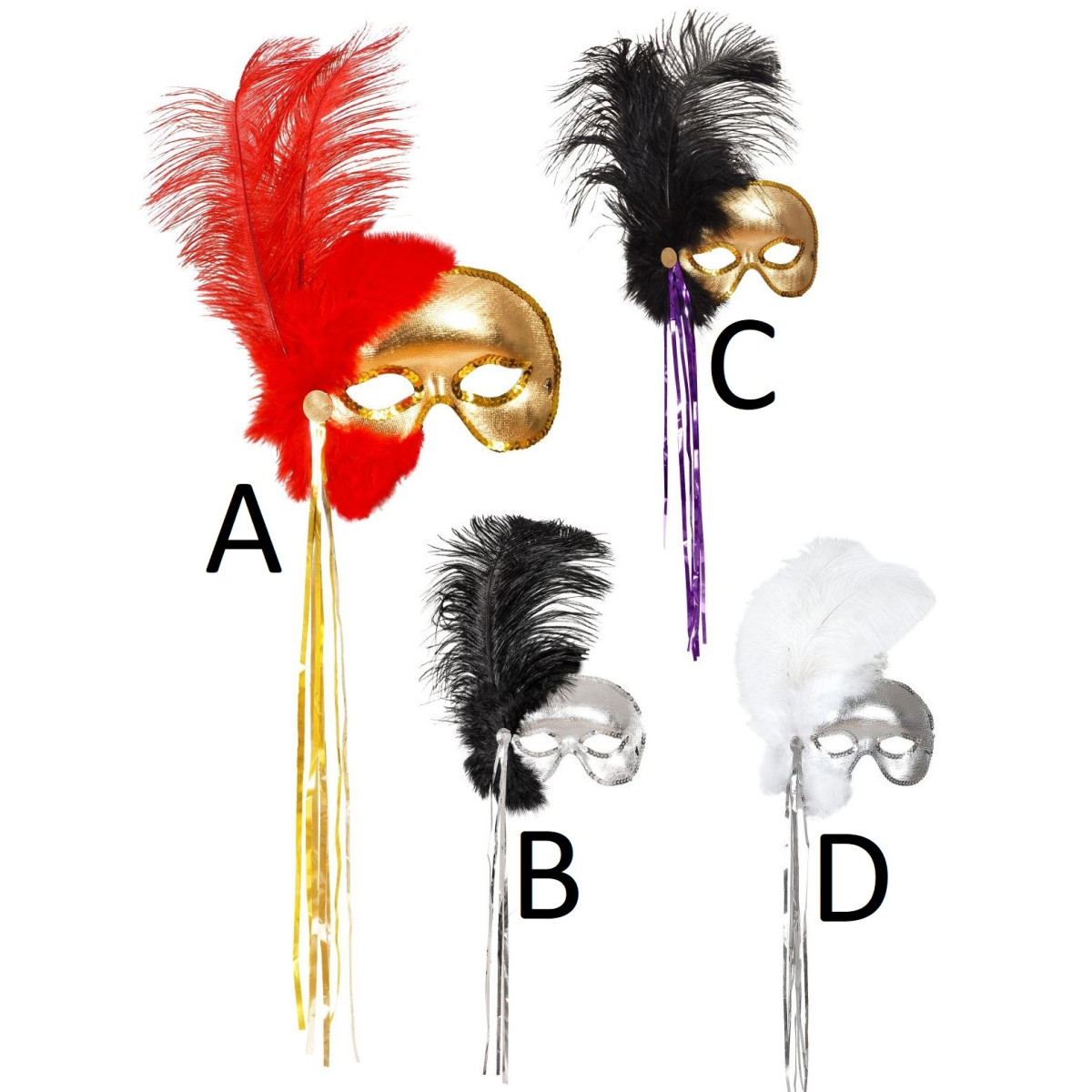 Láká vás kouzlo benátských plesů? Maska Phantom s peřím na praktické tyčce je elegantní doplněk, který se pohodlně drží a dodá vašemu kostýmu tajemný nádech. Ideální volba pro ty, kteří nechtějí nosit masku přímo na obličeji.