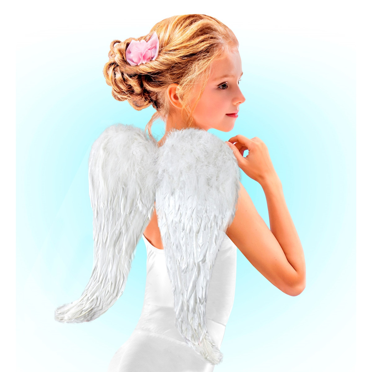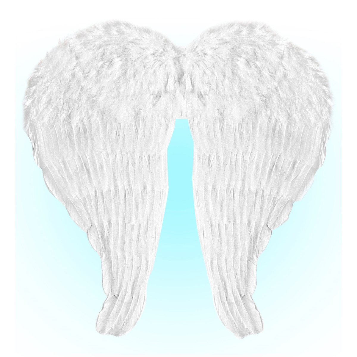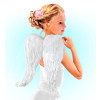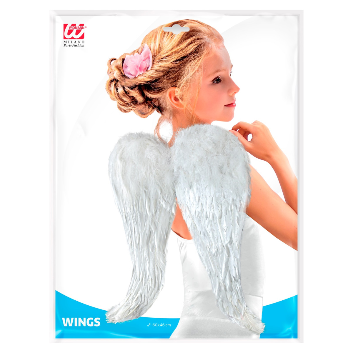 Objevte kouzlo bílých andělských křídel! Tato andělská křídla jsou vyrobená z peří a jejich rozměry 60 × 46 cm umožňují snadné nasazení pomocí elastických popruhů na zádech.