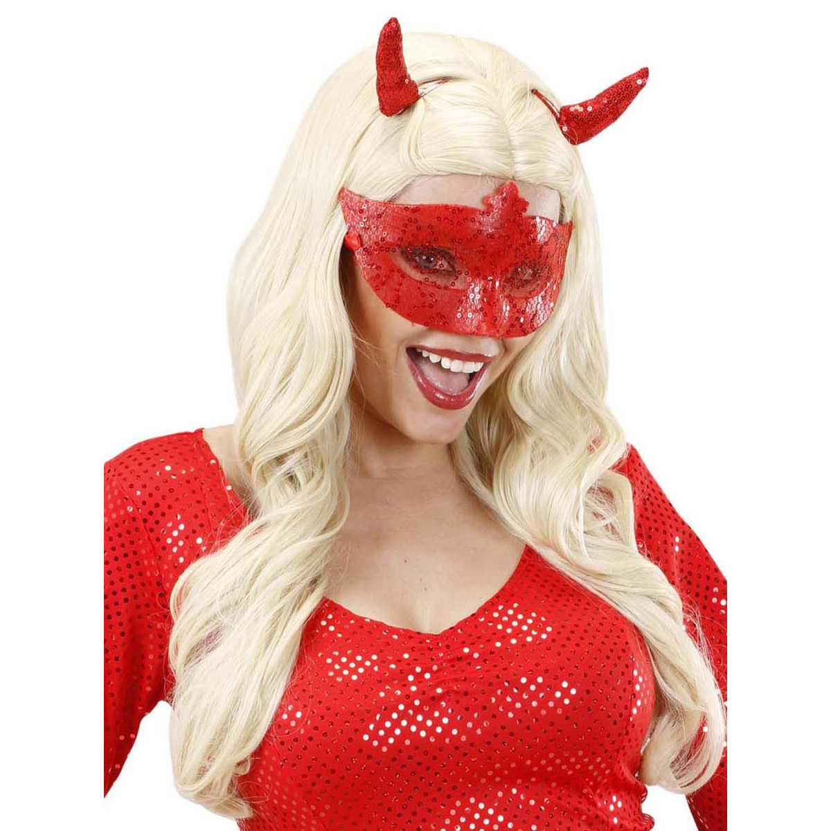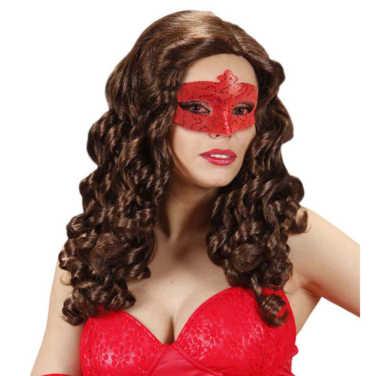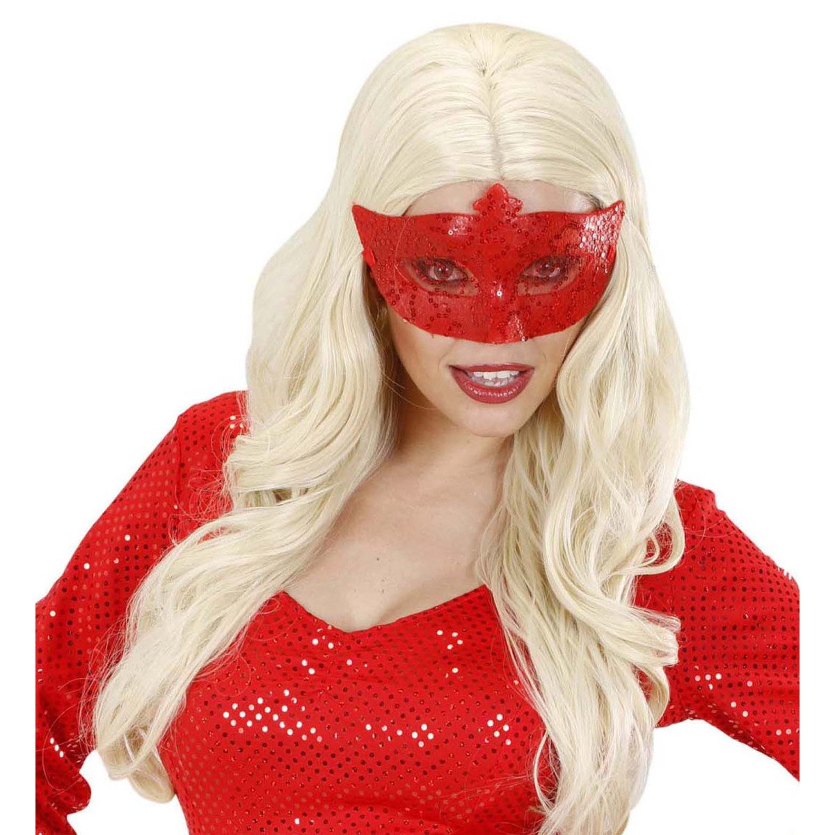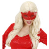 Červená karnevalová maska s flitry pro ty, kteří chtějí zazářit. Ideální doplněk pro jedinečný styl. Maska se upevňuje pomocí elegantních stužek, které zajišťují, že skvěle sedí po celou dobu zábavy.