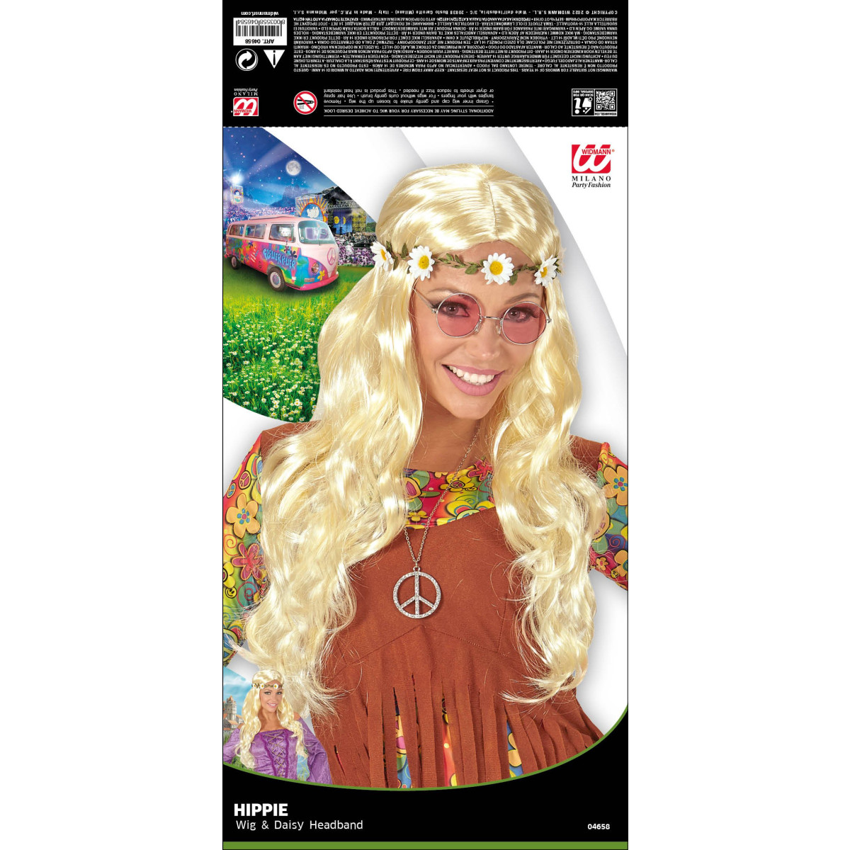 Karnevalová hippie paruka je výraznou volbou pro milovníky hippie stylu a bohémské atmosféry. V blond provedení s dlouhými vlnitými vlasy sahajícími až na prsa a čelenkou s kopretinami tvoří dokonalou kombinaci pro proměnu v autentickou hippie dámu. Tato paruka v sobě nese ducha 60. a 70. let a umožní vám vyjádřit vlastní kreativitu i užít si atmosféru tohoto zlatého období.