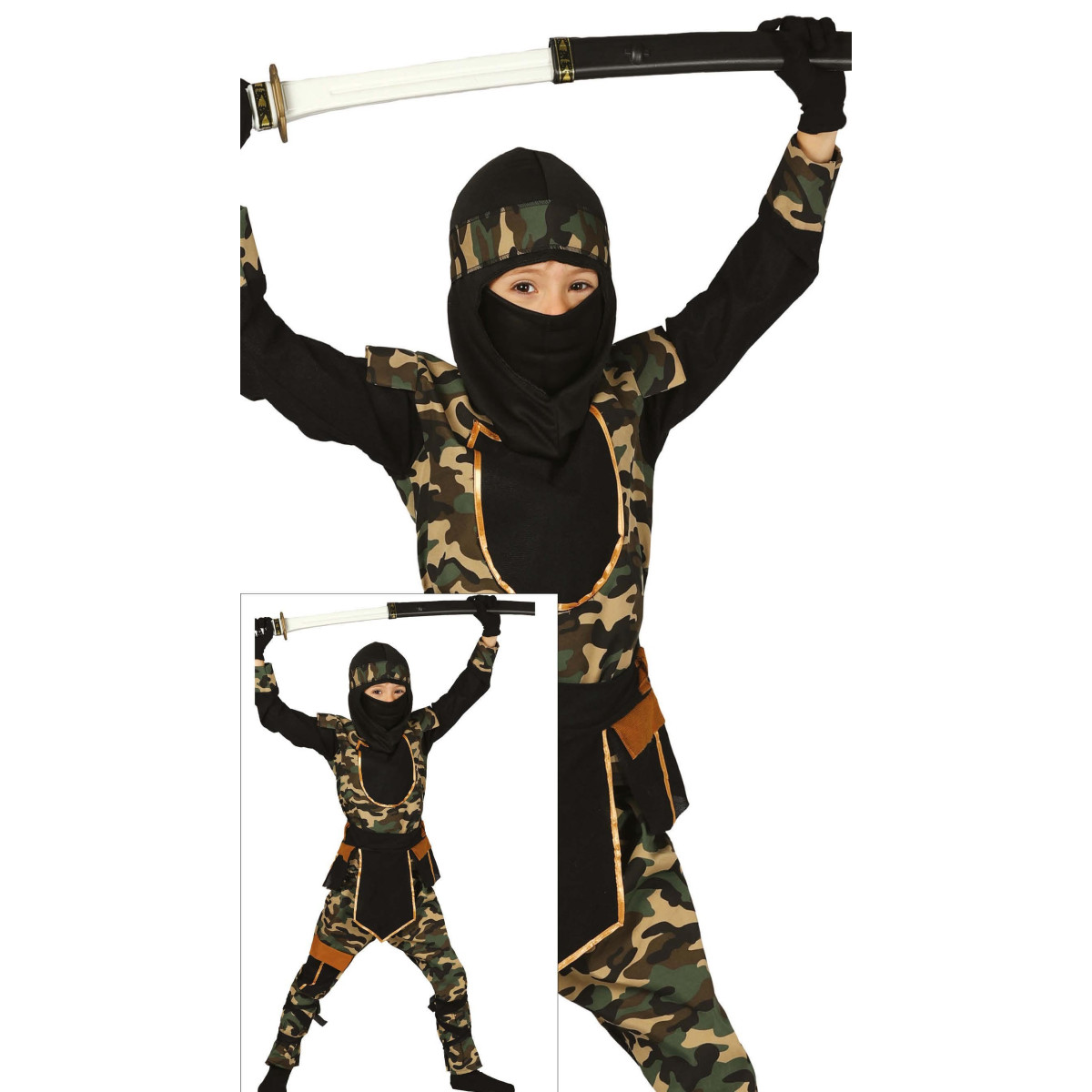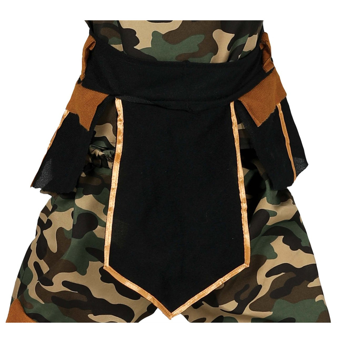 Kostým Vojenská Ninja spojuje tajemný ninja styl s vojenskými prvky a vytváří jedinečný vzhled. Tkanina s vojenským vzorem dodává kostýmu zvláštní dynamiku, díky které je ještě atraktivnější pro karnevalové oslavy nebo tematické hry.