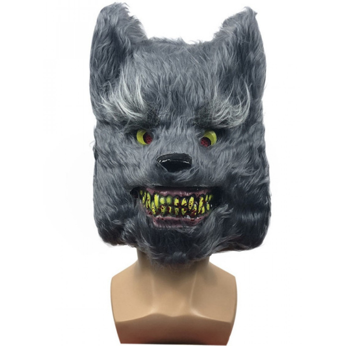 Tato úchvatná maska šedého vlkodlaka přiměje lidi přemýšlet, jestli nejsou legendy o vlkodlacích přece jen pravdivé! Precizně tvarovaná maska pokrývá celý obličej a je navržena tak, aby vypadala jako hrozivý vlkodlak, který odhaluje své špičaté žluté zuby. Černá a šedá umělá srst pokrývá bradu, tváře i horní část hlavy. Otvory pro oči a ústa umožňují pohodlné dýchání i dobrý výhled.