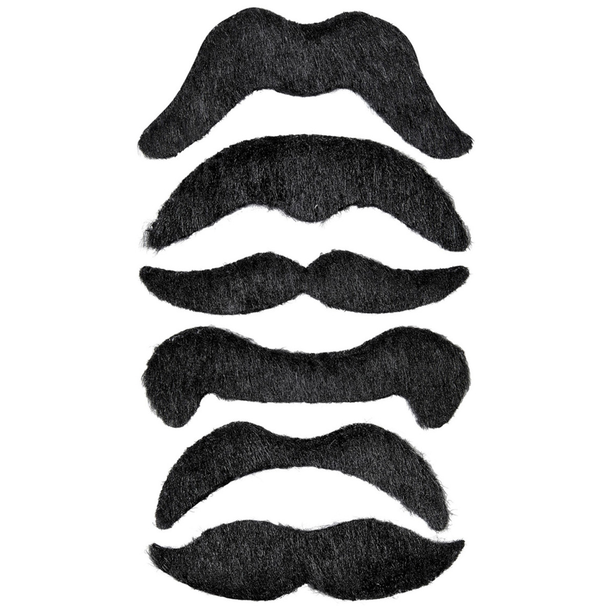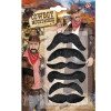 Sada samolepicích černých knírů pro kovboje. Každý den jiný styl kníru? Nic jednoduššího! V sadě kovbojských knírů najdete 6 různých tvarů.