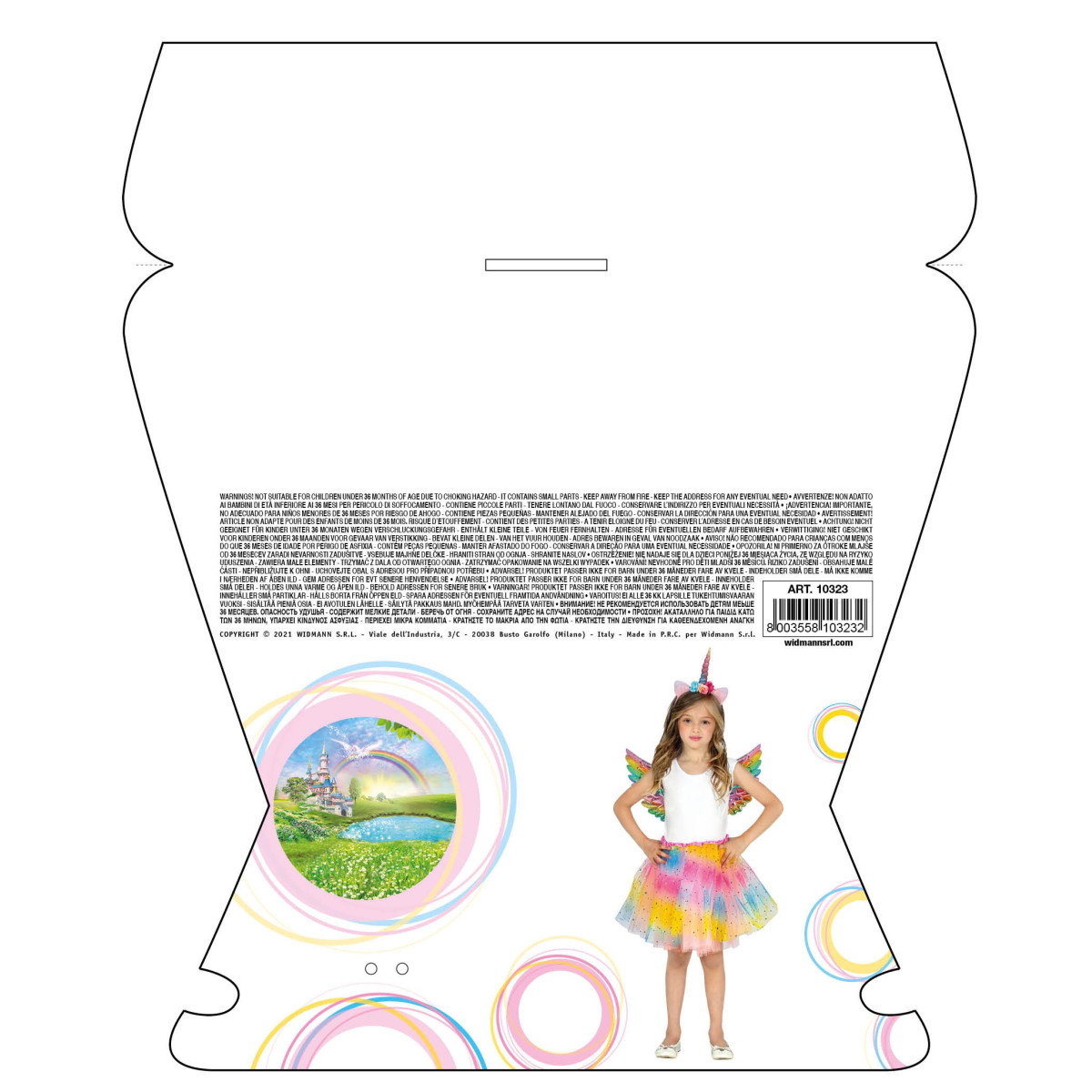 Je i vaše holčička zamilovaná do jednorožců? Náš kostým jednorožce jí udělá radost. Karnevalová sada v duhových barvách pro jednorožce/Unicorna obsahuje tutu sukni, čelenku s rohem a křídla. Tutu sukně je vícevrstvá a zdobená třpytivými hvězdičkami. Velikost kostýmu jednorožce je univerzální a vhodná pro dívky. Délka sukně je 33 cm, obvod pasu 55–80 cm. V pase je nařasená a všitá gumička, díky které je dobře pružná.