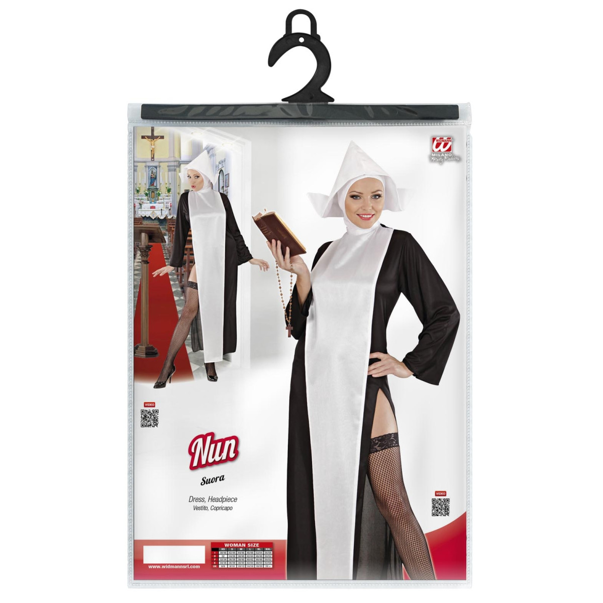 Klasický a svůdný karnevalový kostým sexy jeptišky pro dámy. Buďte neodolatelné na karnevalové párty s tímto kostýmem jeptišky. Kostým obsahuje šaty a pokrývku hlavy. Pro dokonalý vzhled jeptišky doporučujeme také síťované punčochy.