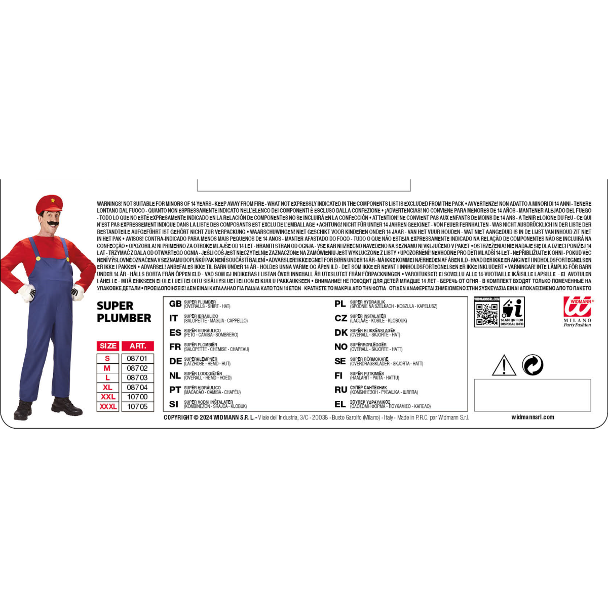 Pánský karnevalový kostým super instalatéra. Tento převlek je letošním prodejním hitem a skvěle se hodí na masopust, karnevaly i tematické večírky. Je vyroben z kvalitního materiálu.