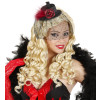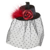 Mini klobouček s červenou růží a červeným peřím je doslova roztomilé mini velikosti. Klobouček má černý závoj a malé sponky, kterými se připevní na hlavu. Klobouk s růží, ideální na večírky, rozlučky se svobodou a karnevalové průvody.